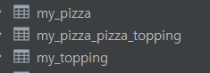 그러면 db에 my_pizza, my_pizza_pizza_topping, my_topping이 추가 되어 있는것을 볼 수 있다.