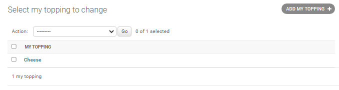 이제 admin 페이지에서 데이터를 추가할 것이다. My toppings에서 ADD MY TOPPING +를 눌러준다.