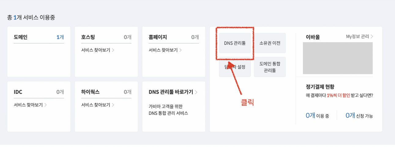 가운데에 보이는 'DNS 관리툴'로 이동해 준다.