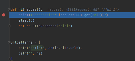 $ curl http://localhost:8000?hi=1 http://localhost:8000?hi=2