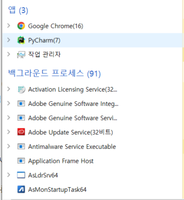 - foreground에서 돌아가는 프로그램(크롬, 파이참 등)
